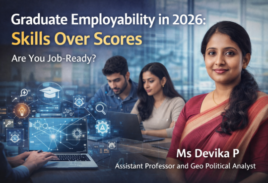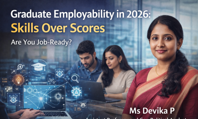 Graduate Employability in 2026: Skills Over Scores highlights how today’s job market prioritizes practical skills over academic marks. With automation, AI, and global competition reshaping hiring trends, employers now value communication, adaptability, digital literacy, and problem-solving abilities. The article emphasizes the growing gap between academic training and industry expectations and encourages graduates to focus on continuous upskilling, internships, networking, and real-world exposure. It concludes that in 2026, career success will belong to those who develop relevant skills and maintain a growth mindset, rather than relying solely on degrees and scores.