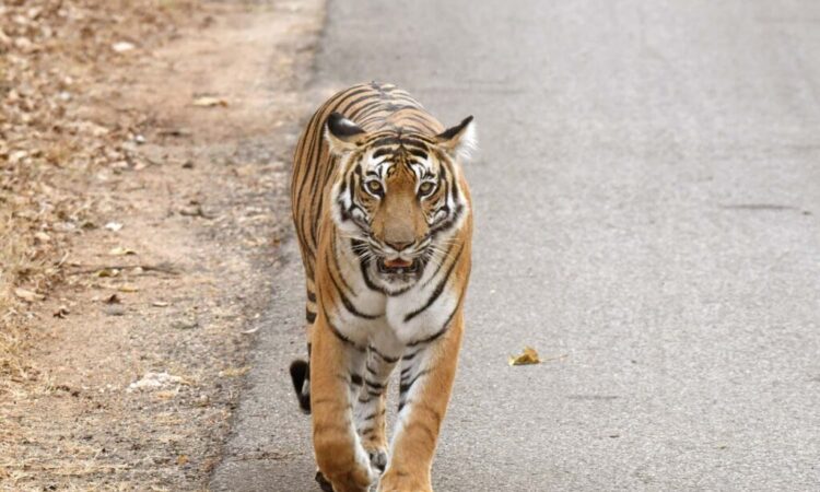 ಎಚ್.ಡಿ.ಕೋಟೆ: ಸಫಾರಿ ವಾಹನದ ಮುಂದೆ ಅಂಜಿಕೆ ಇಲ್ಲದೆ ಕಾಣಿಸಿಕೊಂಡ ಹೆಣ್ಣು ಹುಲಿ – ಛಾಯಾಗ್ರಾಹಕ ಕ್ಯಾಮೆರಾದಲ್ಲಿ ಸೆರೆ