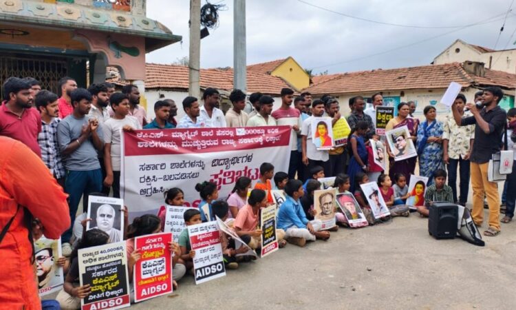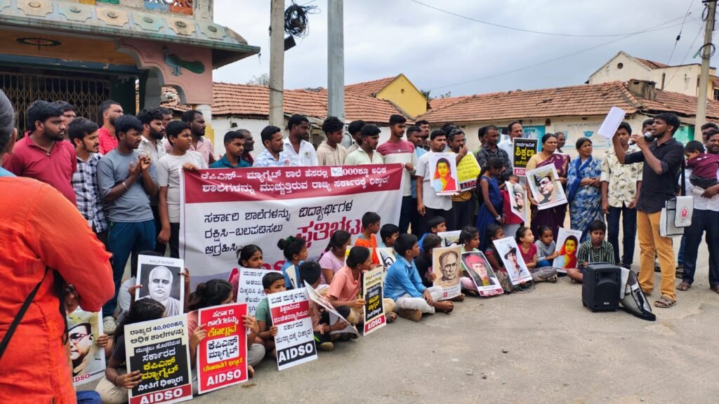 ಮೈಸೂರು :- ಕೆಂಪಿಸಿದ್ದನ ಹುಂಡಿ ಸರ್ಕಾರಿ ಹಿರಿಯ ಪ್ರಾಥಮಿಕ ಶಾಲೆಯನ್ನು ವಿಲೀನದ ಹೆಸರಿನಲ್ಲಿ ಮುಚ್ಚಲು ಹೊರಟಿರುವ ಸರ್ಕಾರದ ನಡೆ ಖಂಡಿಸಿ ಎಐಡಿಎಸ್ಓ ನೇತೃತ್ವದಲ್ಲಿ ಗ್ರಾಮಸ್ಥರು, ಪೋಷಕರು ಹಾಗೂ ವಿದ್ಯಾರ್ಥಿಗಳು ಪ್ರತಿಭಟನೆ ನಡೆಸಿ ಆಕ್ರೋಶ ಹೊರಹಾಕಿದರು.