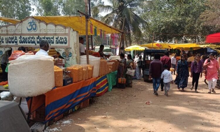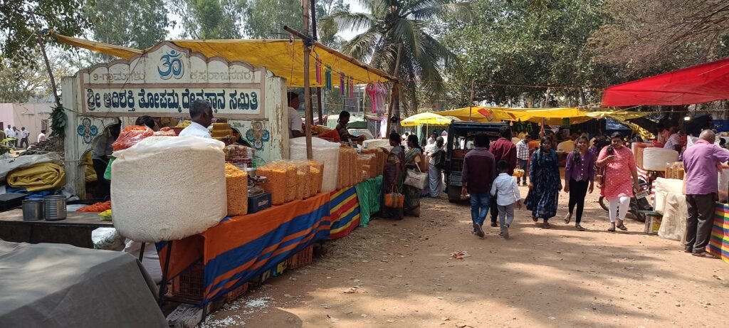 ಜಾತ್ರೆಯ ಸಂದರ್ಭದಲ್ಲಿ ದೇವಾಲಯ ಸಂಪರ್ಕ ರಸ್ತೆಗಳು ವ್ಯಾಪಾರ ಚಟುವಟಿಕೆಗಳಿಂದ ಕೂಡಿಬಂದಿದ್ದವು. ಸಿಹಿ ತಿಂಡಿಗಳ ಅಂಗಡಿಗಳು, ಮಕ್ಕಳ ಆಟೋಪಕರಣಗಳ ಮಳಿಗೆಗಳು, ಮಹಿಳೆಯರ ಅಲಂಕಾರ ವಸ್ತುಗಳ ಅಂಗಡಿಗಳು ಹಾಗೂ ವಿವಿಧ ಚಿಲ್ಲರೆ ವ್ಯಾಪಾರಿಗಳು ಸಾಲಾಗಿ ತೆರೆದಿದ್ದು, ಭಕ್ತರ ಗಮನ ಸೆಳೆದವು. ನೂರಾರು ಅಂಗಡಿಗಳು ಜಾತ್ರೆಯ ಹಬ್ಬದ ವಾತಾವರಣಕ್ಕೆ ಬಣ್ಣ ತುಂಬಿದವು. ವಿಶೇಷವಾಗಿ ಸಿಹಿತಿಂಡಿ ಅಂಗಡಿಗಳಲ್ಲಿ ಜನಸಂದಣಿ ಹೆಚ್ಚಾಗಿದ್ದು, ಮಕ್ಕಳ ಹಾಗೂ ಕುಟುಂಬ ಸದಸ್ಯರ ಸಂಭ್ರಮ ಸ್ಪಷ್ಟವಾಗಿ ಕಂಡುಬಂತು.