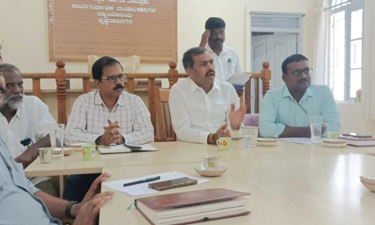 ಕೆ.ಆರ್.ನಗರ. ಮಾ. 05:- ಈ ಬಾರಿ ಬಿಸಿಲಿನ ತಾಪ ಹೆಚ್ಚಾಗಿರುವುದರಿಂದ ಸಾಂಕ್ರಾಮಿಕ ರೋಗಗಳು ಹರಡುವ ಮತ್ತು ಕುಡಿಯುವ ನೀರಿಗೆ ಅಭಾವ ಉಂಟಾಗುವ ಹಾಗೂ ಜಾನುವಾರುಗಳಿಗೆ ಮೇವಿನ ಕೊರತೆ ಉಂಟಾಗದಂತೆ ರೈತರ ಕೃಷಿ ಪಂಪಸಟ್ಟು ಗಳಿಗೆ ವಿದ್ಯುತ್ ತೊಂದರೆಯಾಗದಂತೆ ಅಧಿಕಾರಿಗಳು ಮುಂಜಾಗ್ರತಾ ಕ್ರಮ ಕೈಗೊಳ್ಳುವಂತೆ ಶಾಸಕ ಡಿ ರವಿಶಂಕರ್ ಸಲಹೆ ನೀಡಿದರು.