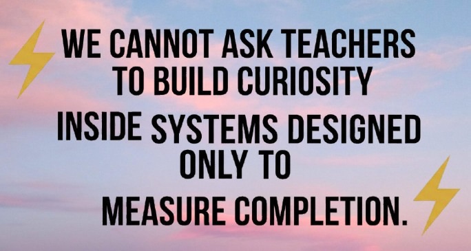 Teachers are often being asked to deliver transformation inside systems still heavily driven by coverage, timelines, and measurable completion.