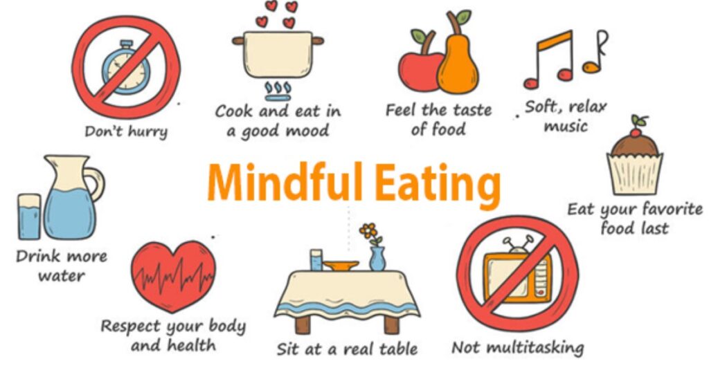 4. Practice mindful eating: Eat slowly and chew well